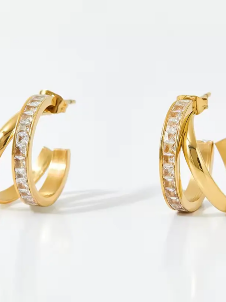 Gold Steel & Rhinestone Earings